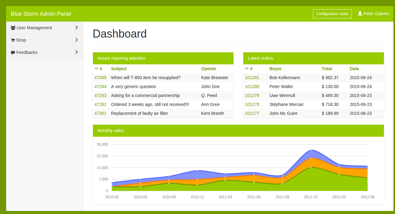 We will be showing screens based on ng-admin. But unfortunately, ng-admin was designed with a dull look and feel to let the content shine. For a teaser demo, we need something a bit sexier. We use our best CSS skills and produce a few colored variations of the original (grey) ng-admin theme :