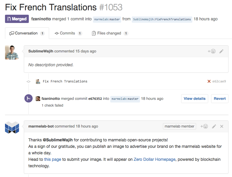 The ZeroDollarHomePage platform is now up and running again. You can use it by opening a pull request on one of marmelab’s open-source repositories on GitHub, see the ads currently displayed on https://github.com/marmelab/ZeroDollarHomePage, or browse the code of the application on marmelab/ZeroDollarHomePage. Yes, we’re open-sourcing the entire ad platform, so you can see in detail how it works, and reproduce it locally.