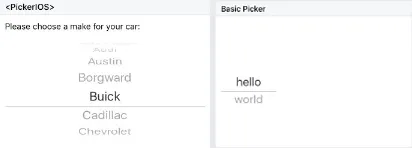 Cet exemple entre le Picker classique et le PickerIOS montre la différence d’affichage entre les deux composants.
