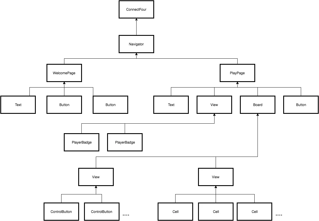 Dans le cas du puissance 4 on a donc un arbre de composants qui ressemble à ce schéma.