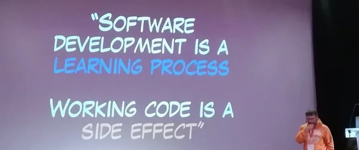 Alberto Brandolini a démarré la conférence en nous proposant une réflexion autour de l’apprentissage. Sa question: si nous devions réécrire un de nos logiciels, combien de temps cela prendrait-il ?