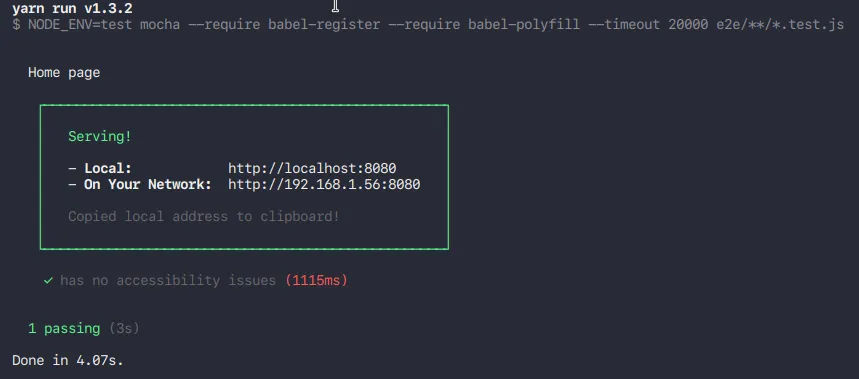 In order to automate my tests, I need a test runner. I’ll be using mocha here as it’s easier for end to end tests. I’m aware that there are solutions to write e2e tests with my favorite runner, Jest, but I haven’t tried it yet.
