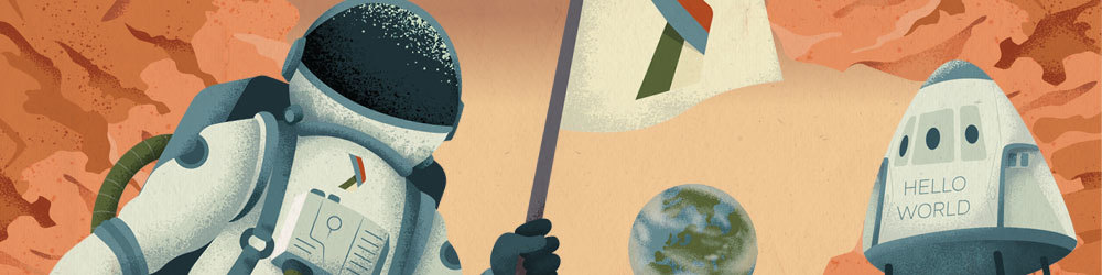 La keynote s’est ouverte au rythme de Thunderstruck, suivi d’une vidéo montrant un décompte et un décollage d’une fusée alors qu’un astronaute en combinaison est venu planter un drapeau au milieu de la scène. Passionné à la fois par l’astronomie et le heavy metal, je n’ai été que rarement aussi bien accueilli dans la région qui héberge pourtant le Hellfest !