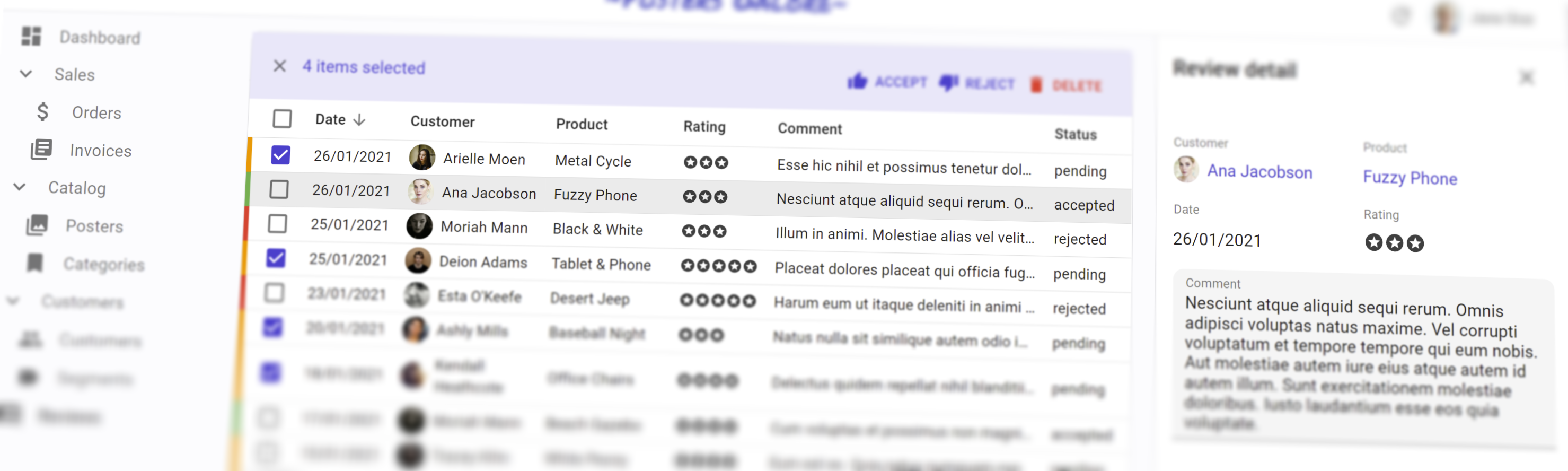 The following capture shows how fast react-admin feels when the data has already been fetched from the API. Navigation is instantaneous, even for complex pages: