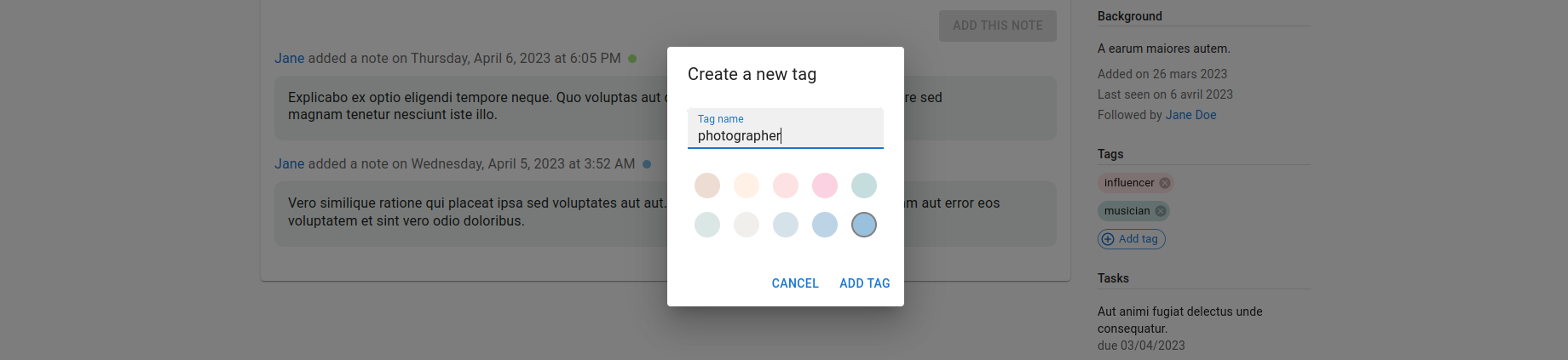 Our goal is to create a component that allows us to select tags for a given contact. Let’s see how the contact