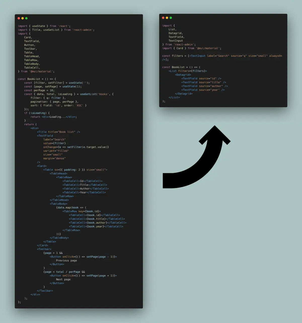 This tutorial explains the List view from first principles, and shows how react-admin allows you to reduce the amount of boilerplate code to focus on the business logic.